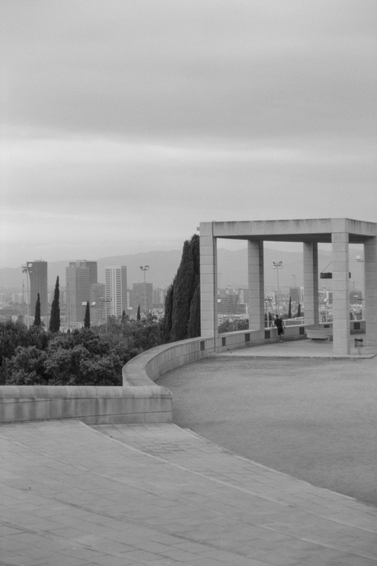 Tout est calme dans la matinée, au sommet de la colline qui domine Barcelone.